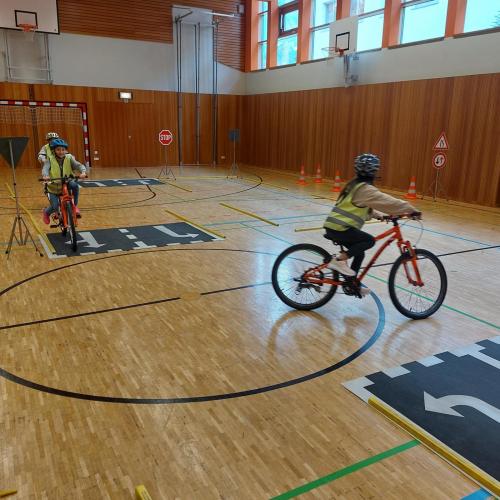 Am 29.01.2025, durften die Kinder der 4. Stufe ihre zweite und somit auch letzte Übung zur Fahrradprüfung im Turnsaal der VS Bruggen absolvieren.