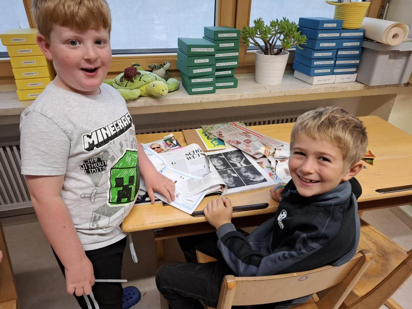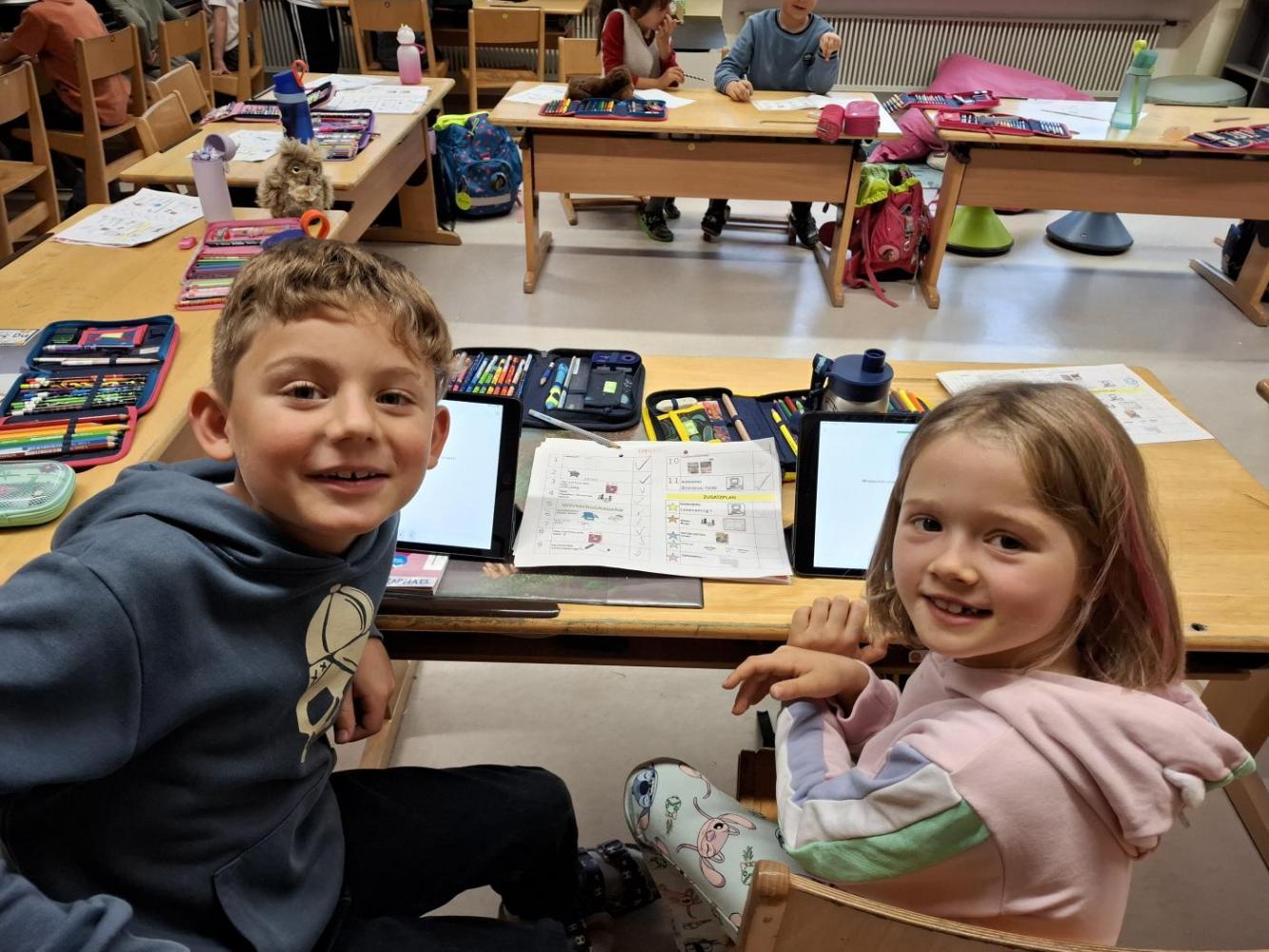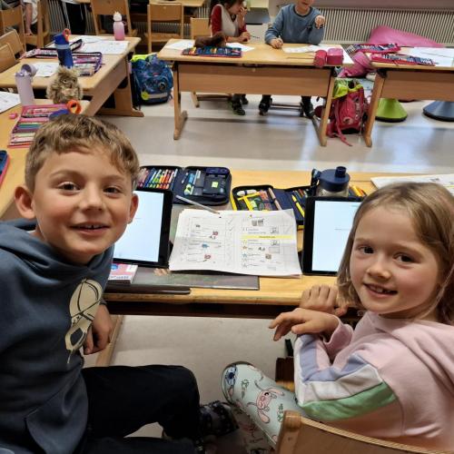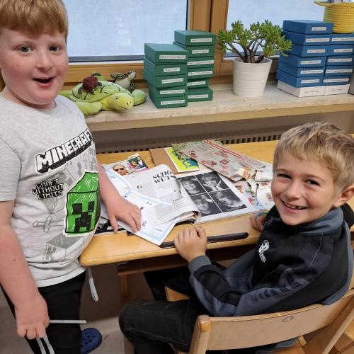 Es gab einen Arbeitsplan für alle Kinder und in Teams (je 1 Schüler:in der ersten mit 1 Schüler:in der zweiten Stufe) wurde an den Stationen gearbeitet.
