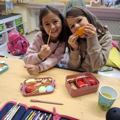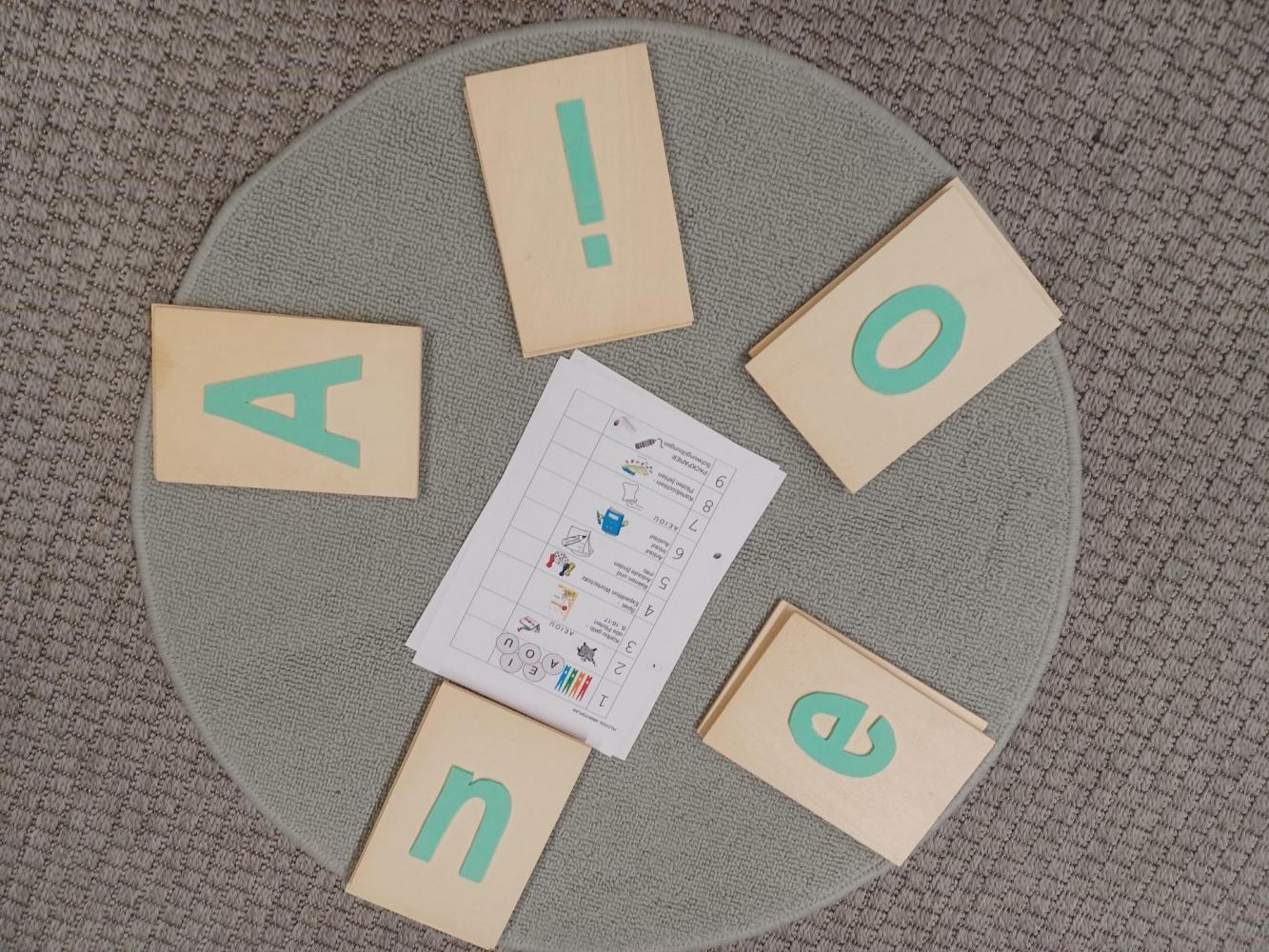 AEIOU wurden ertastet und erfühlt, geschrieben, gelesen, in Zeitungen und im Wörterbuch gesucht, nachgefahren, ergänzt und zum krönenden Abschluss auch noch gegessen.