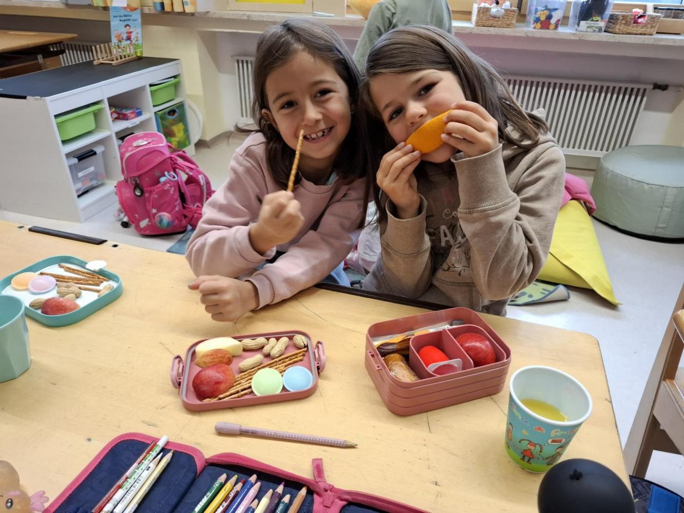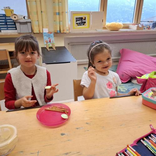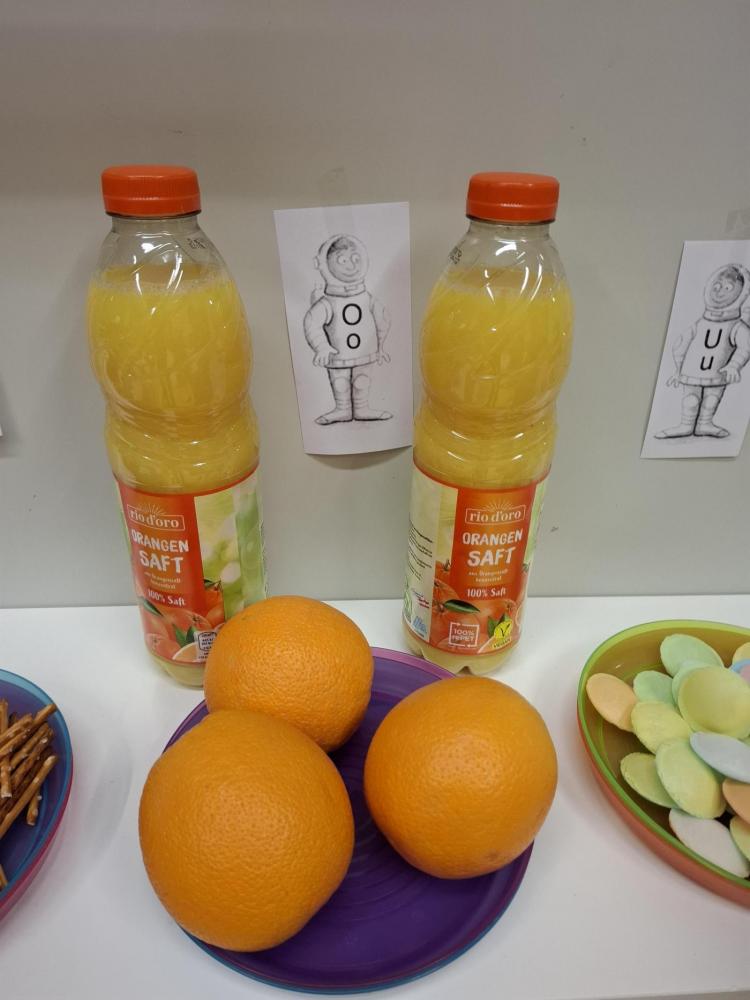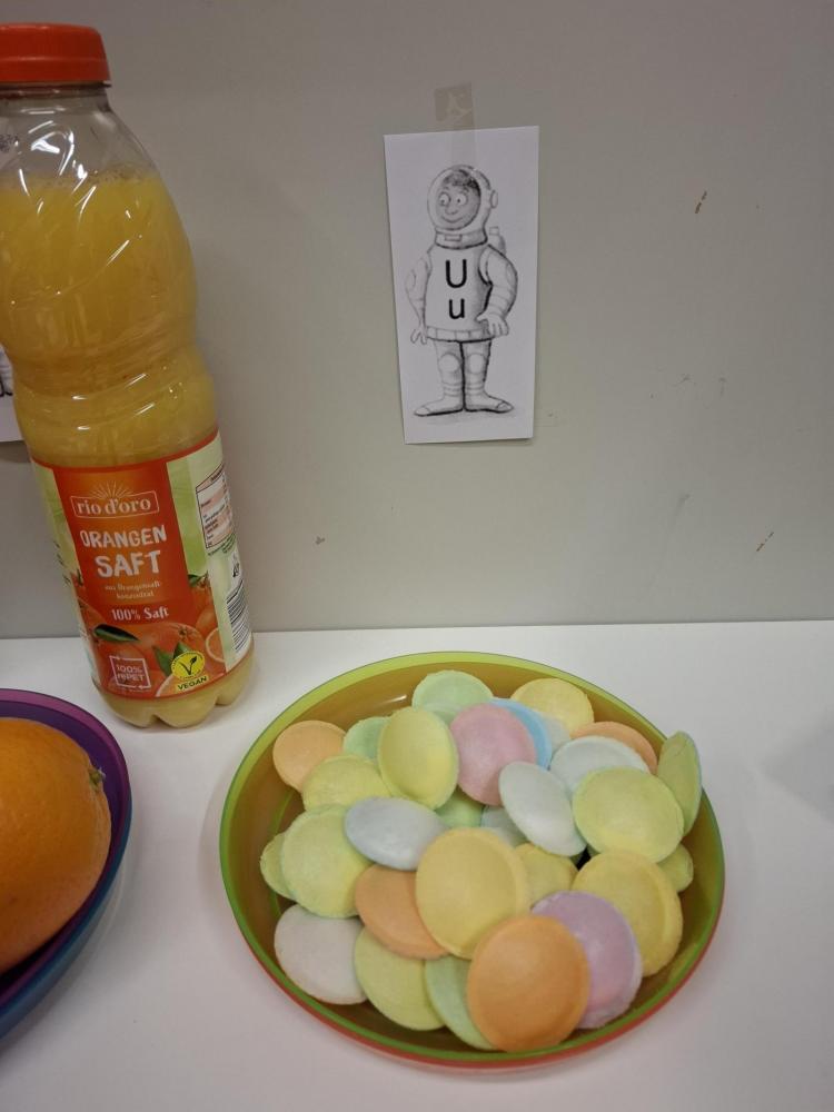 Apfel, Erdnuss, Ittelos (Soletti, die wie I aussehen ;-)), Orangen und Orangensaft und Ufos ließen sich die Kinder schmecken.