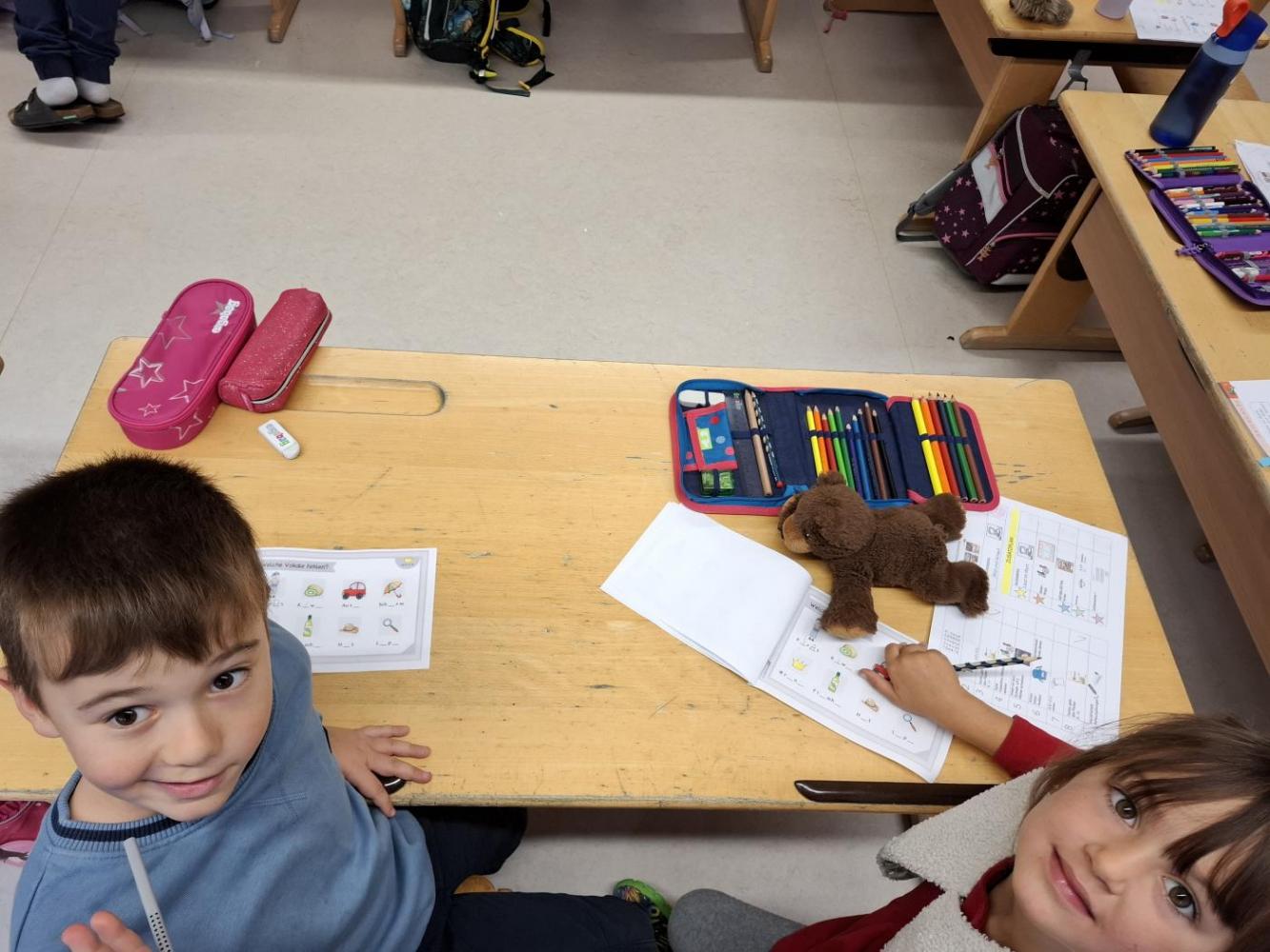 Auch die Kinder der zweiten Stufe erhielten Aufgaben zum Lesen, Schreiben und Rätseln, die sich um Wörter mit Selbstlauten drehten.