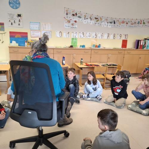 Sie stellte und las uns ihr Buch "Frieda Schaf und der Mond" vor.