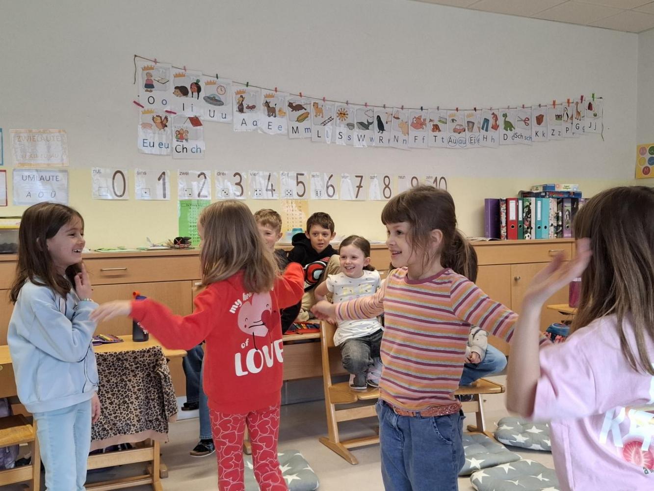 Es gab plötzlich grimmig dreinschauende Wölfe, grinsende Schafe und plappernde Feen, die durch unseren Klassenraum flogen und spazierten.