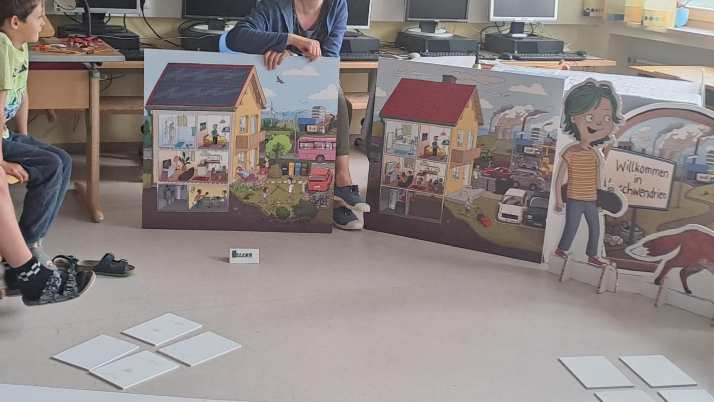 Durch eine Geheimtür gelangten sie in das Land „Verschwendrien“, in welchem die Menschen unverantwortlich mit den wertvollen Ressourcen umgehen und unglaublich viel Energie verbrauchen.