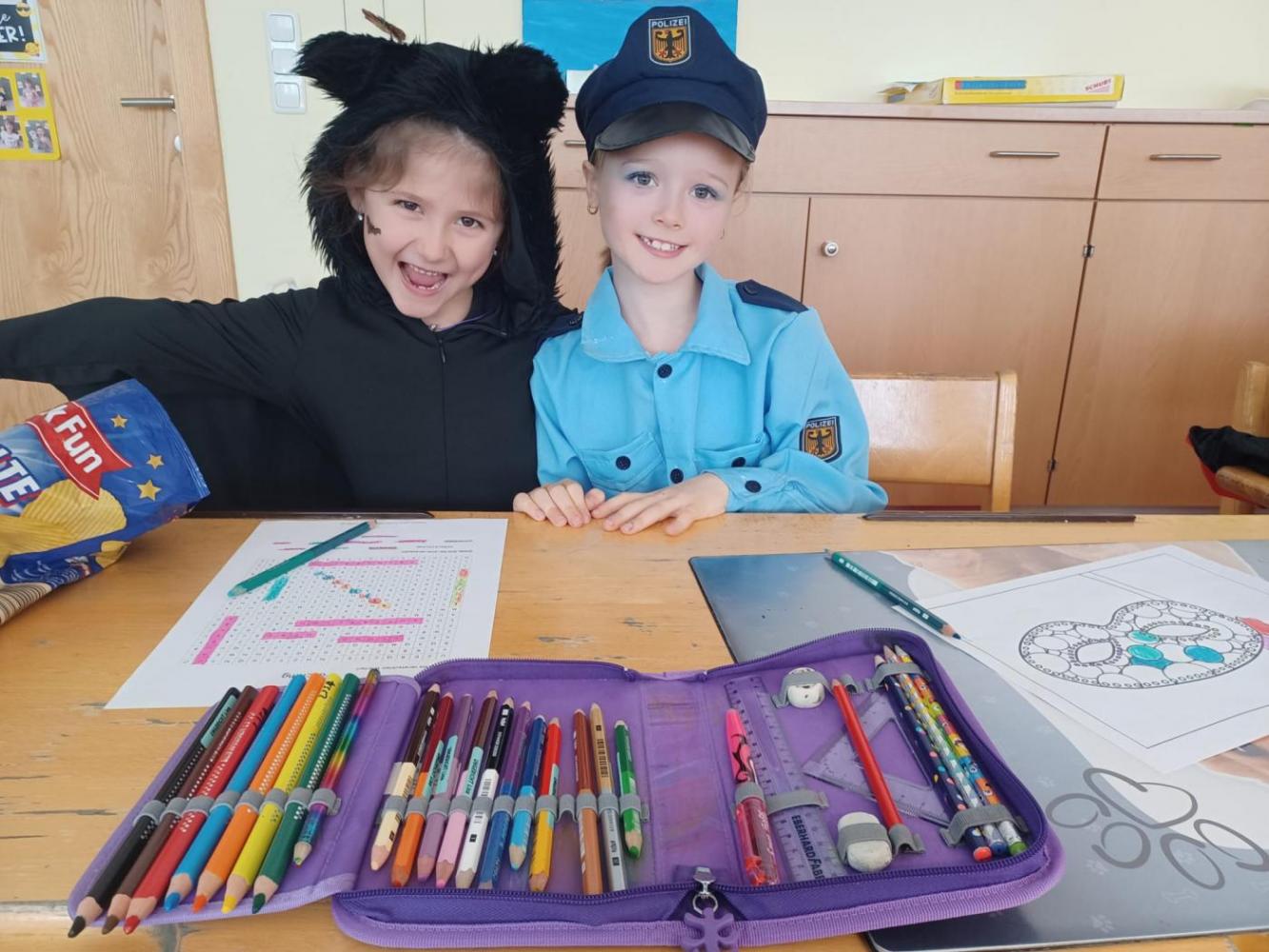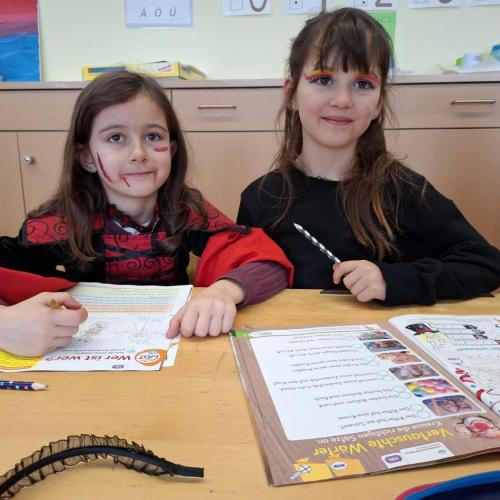 Wie immer am Faschingsdienstag kamen alle Kinder und Lehrerinnen verkleidet zur Schule.