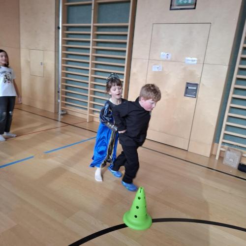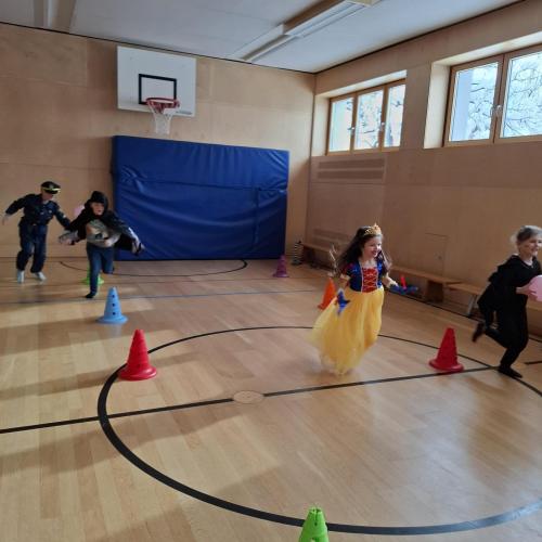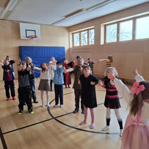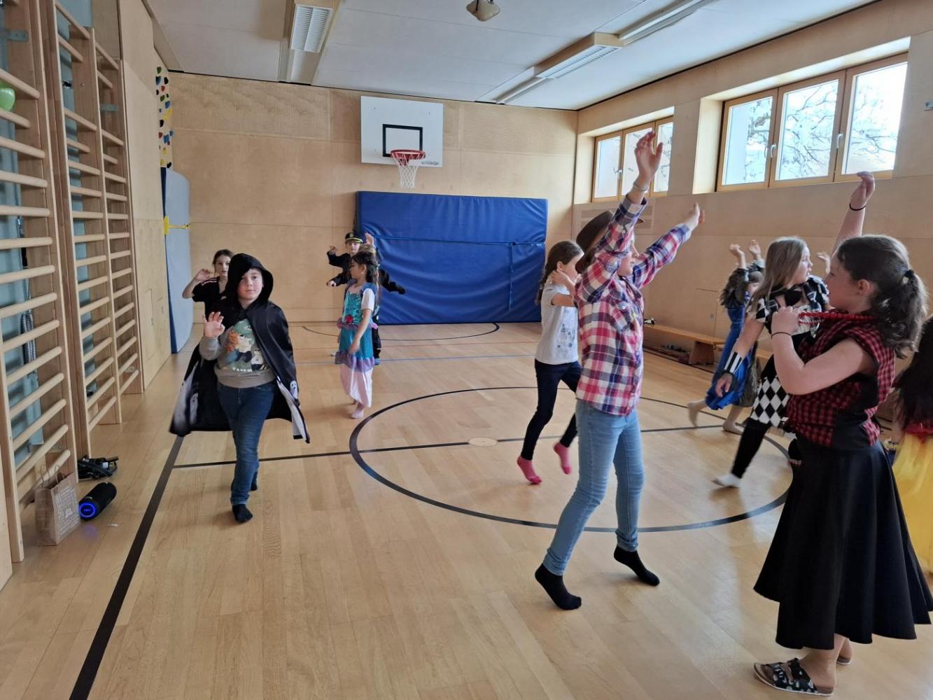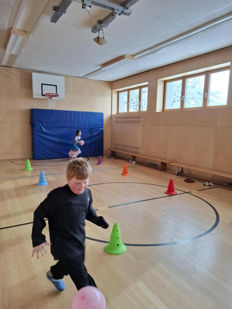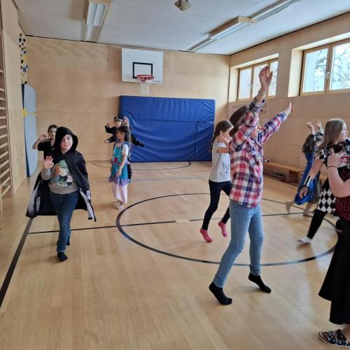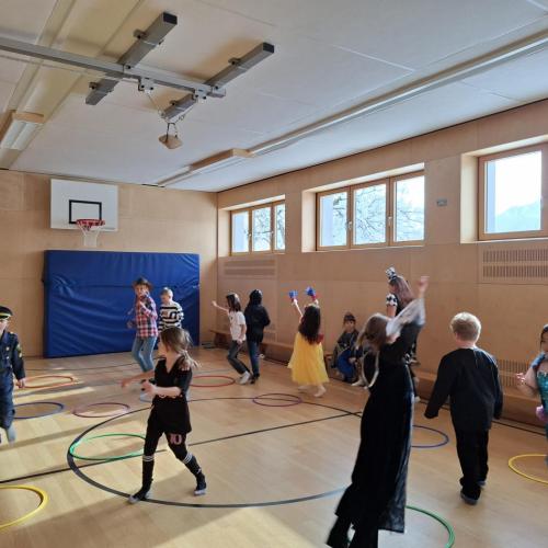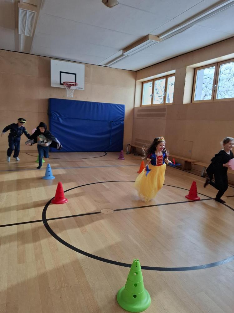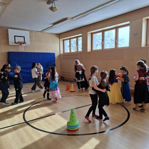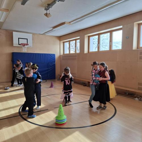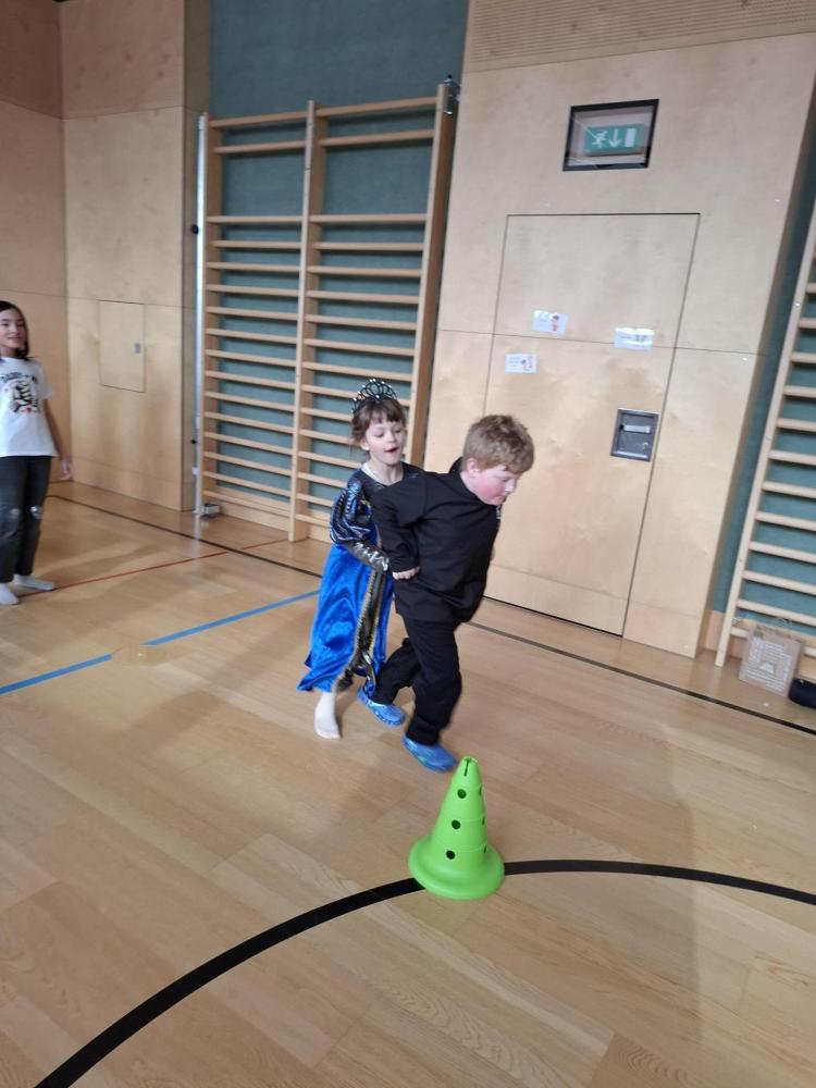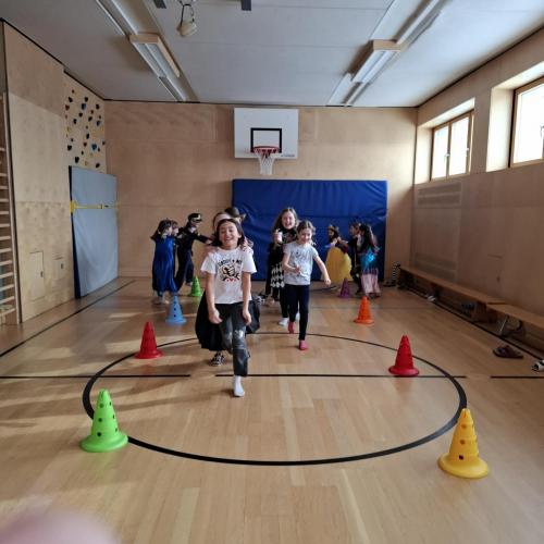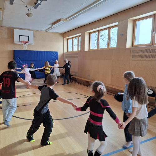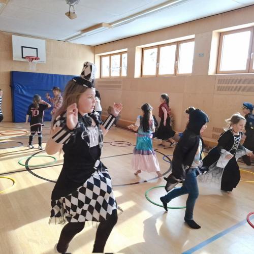 Nach der Pause gab es viel zu lachen bei den Spielen in der Klasse und mit schwungvoller Musik wurde ebenfalls gespielt, getanzt und gesungen im Turnsaal.