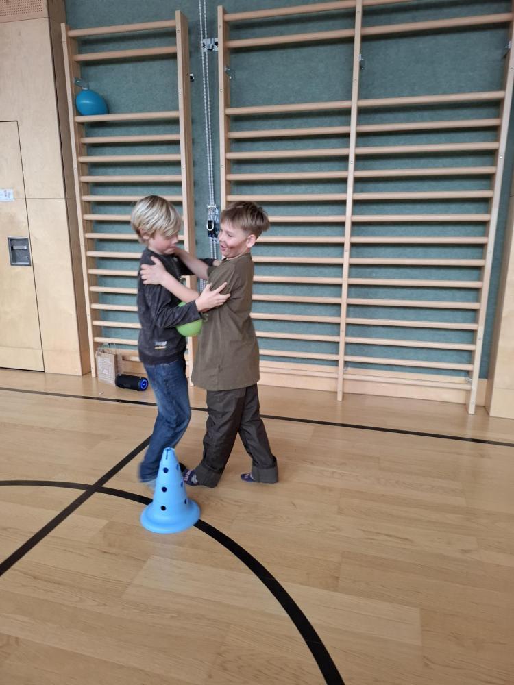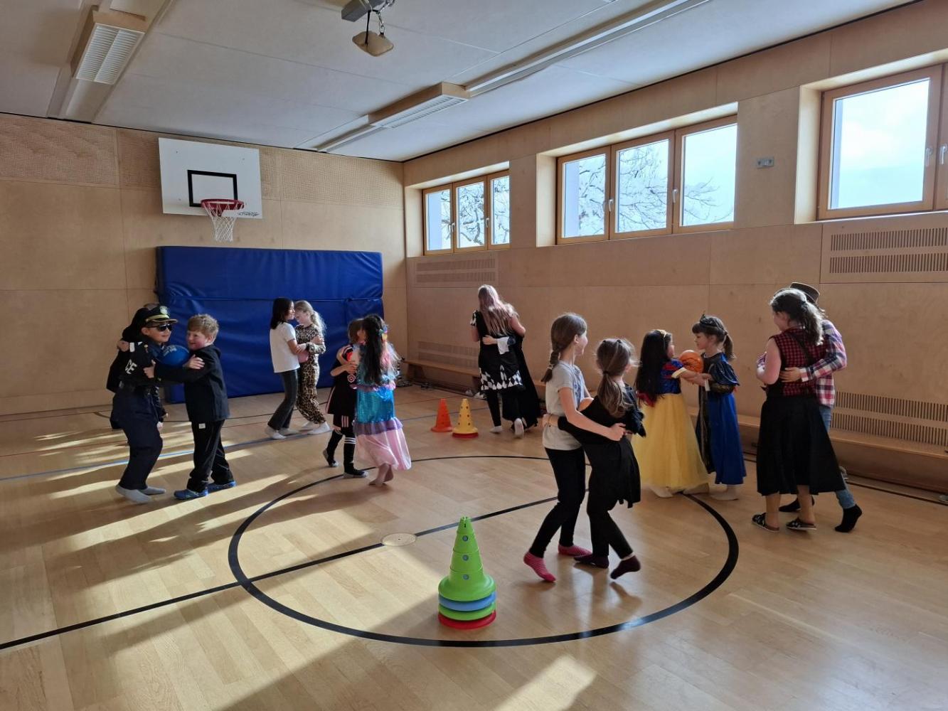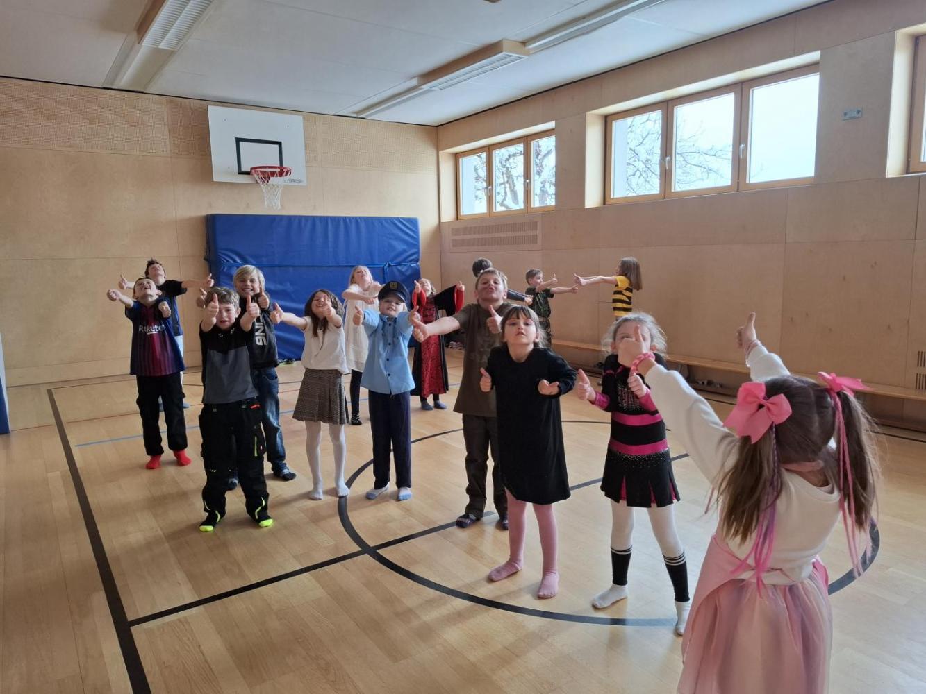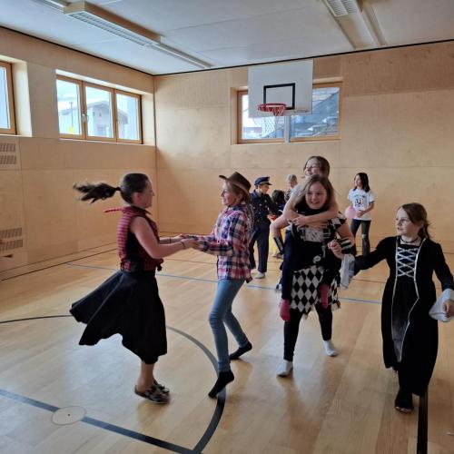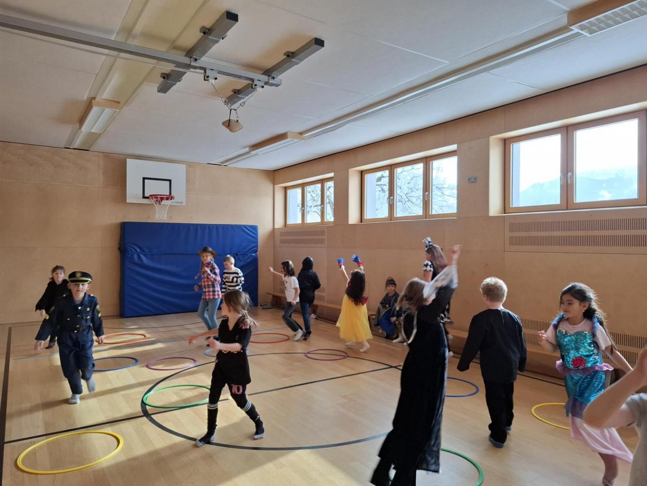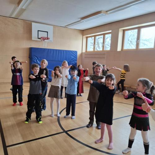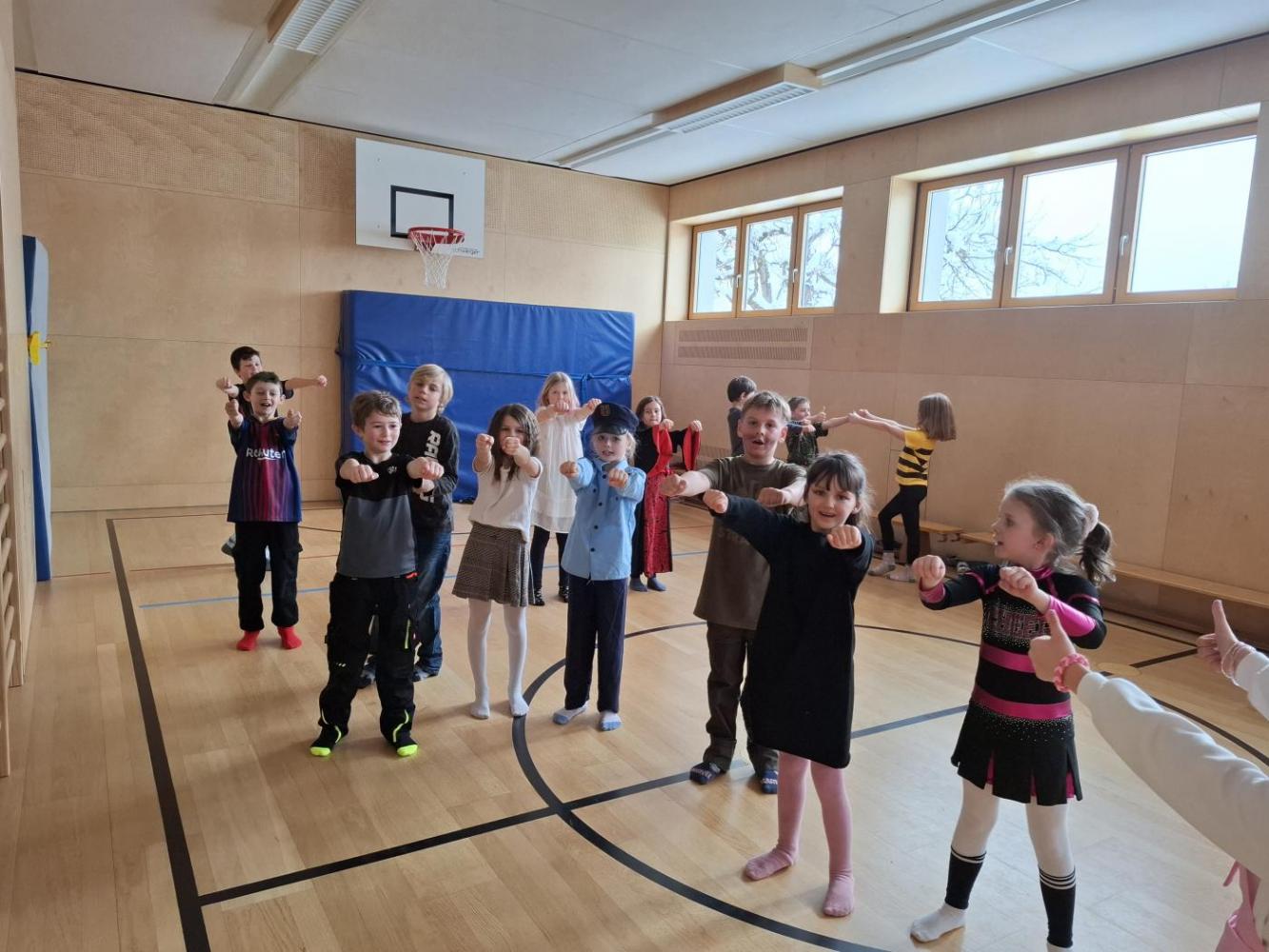 Nach der Pause gab es viel zu lachen bei den Spielen in der Klasse und mit schwungvoller Musik wurde ebenfalls gespielt, getanzt und gesungen im Turnsaal.