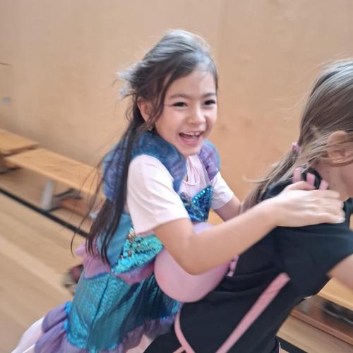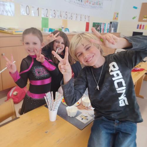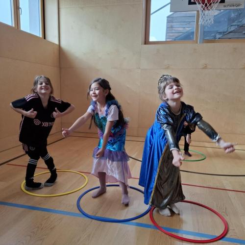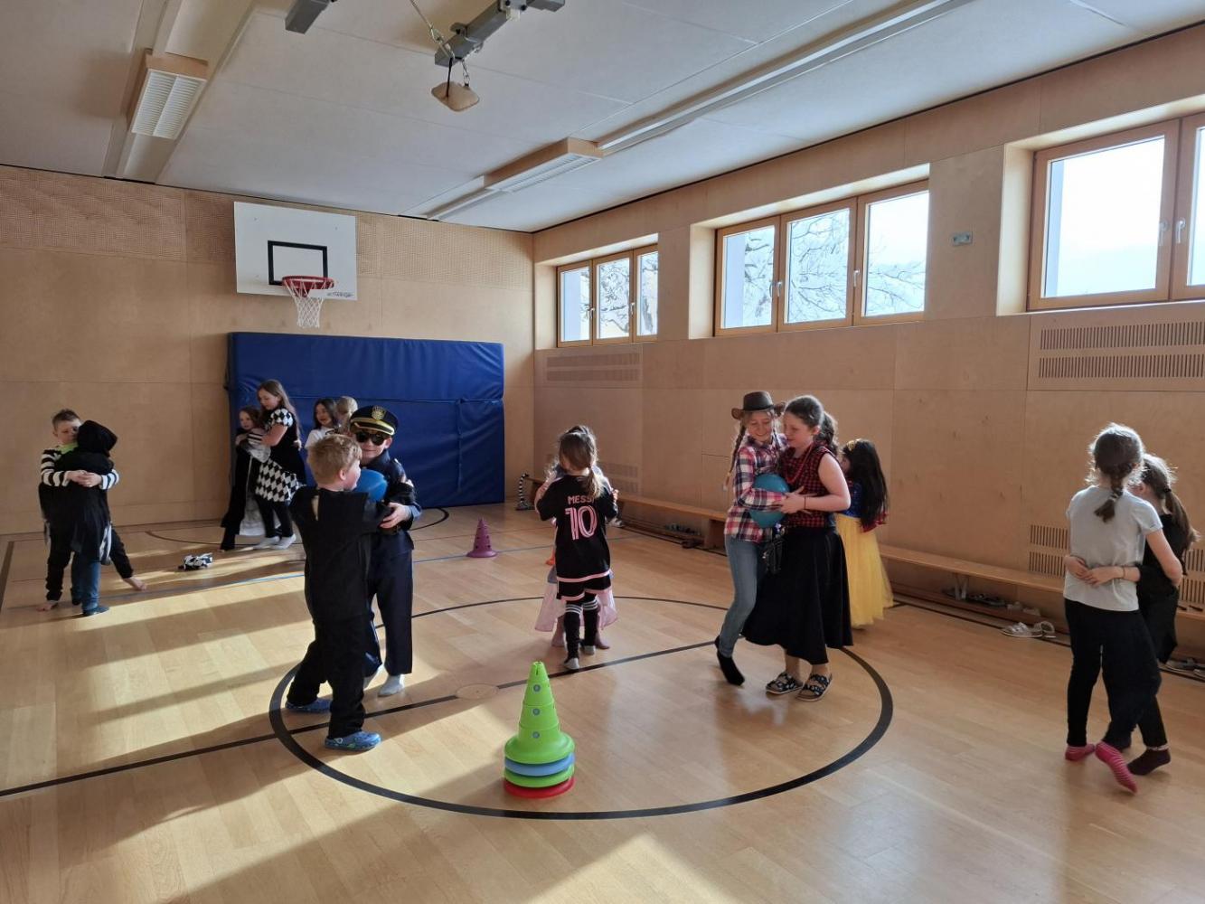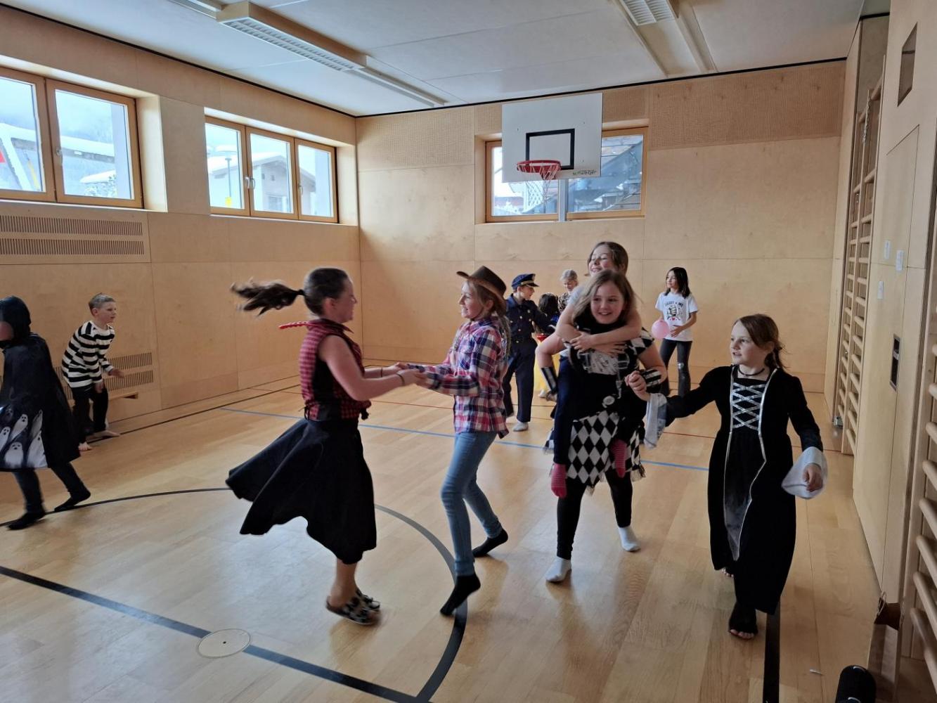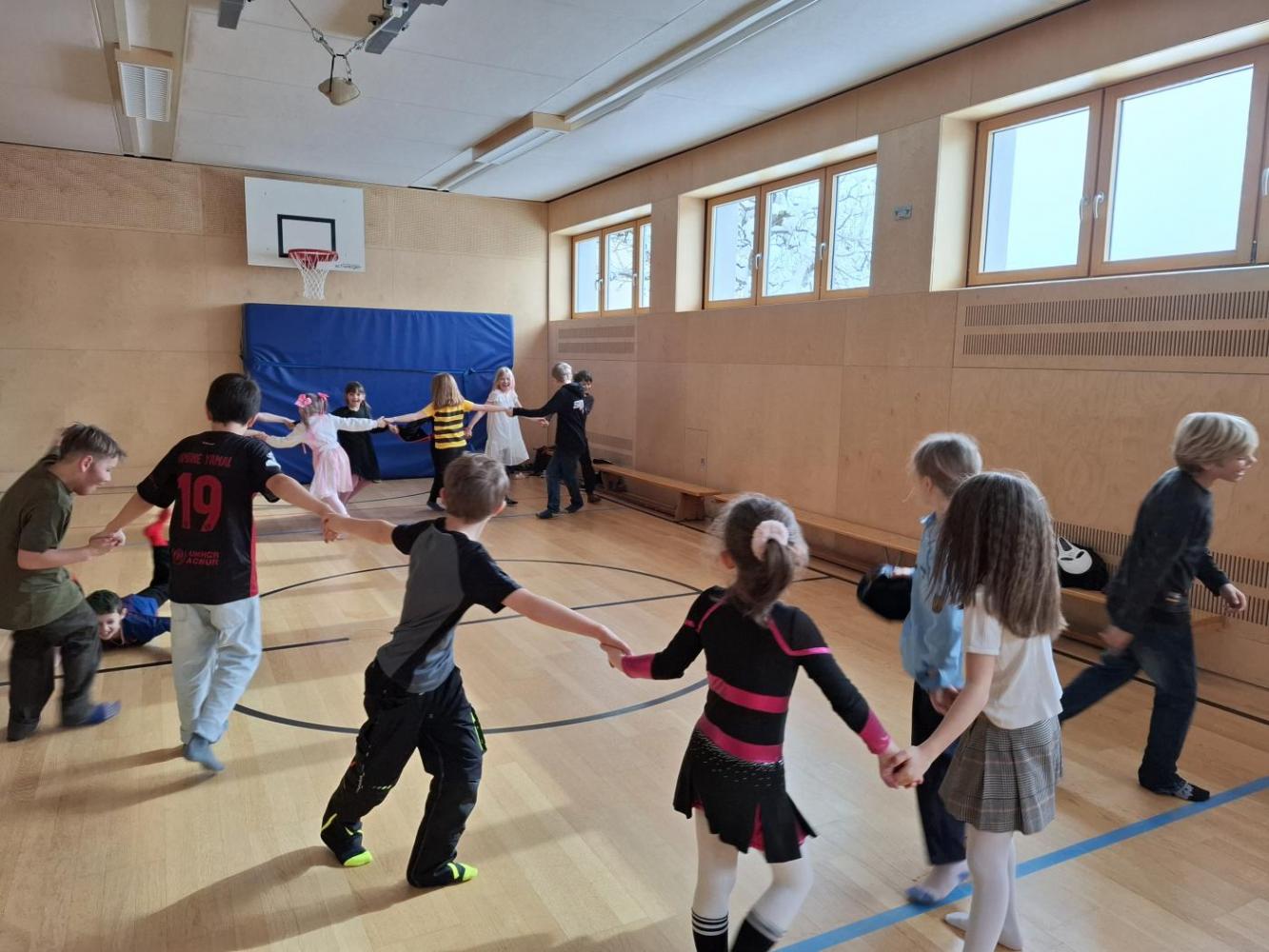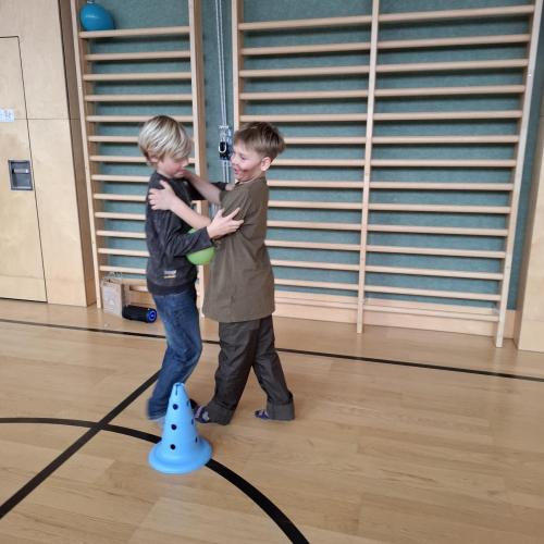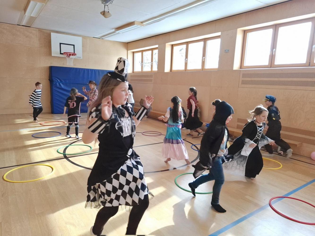 Nach der Pause gab es viel zu lachen bei den Spielen in der Klasse und mit schwungvoller Musik wurde ebenfalls gespielt, getanzt und gesungen im Turnsaal.