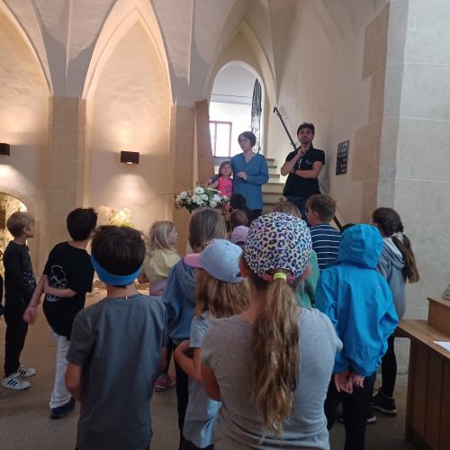Sie führten uns in zwei Gruppen durch das Schloss Landeck.