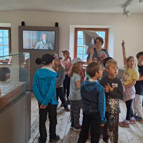 Dass es sogar eine eigene Stube gibt, in der man Informationen über unser Dörfchen Stanz lesen kann, freute die Kinder besonders.