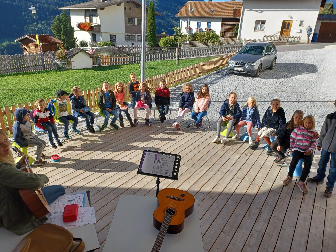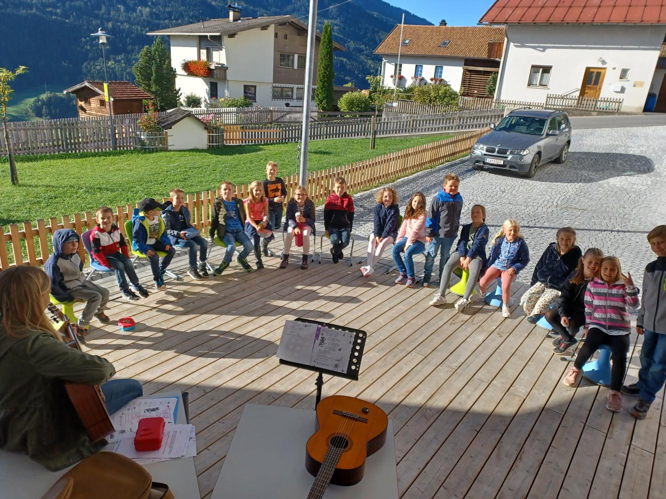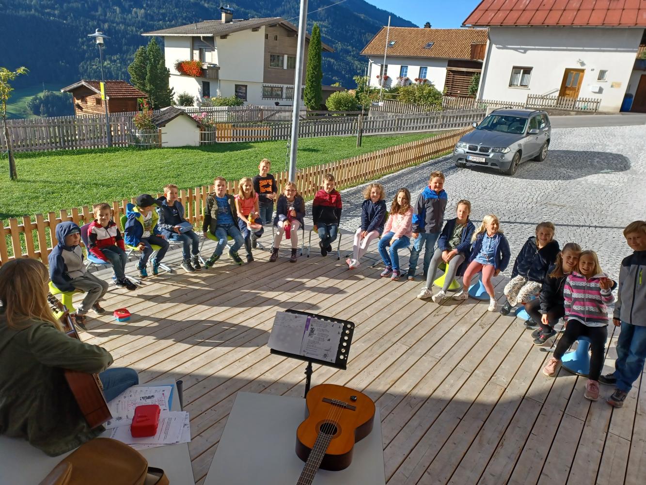 Schon in der letzten und auch diese Woche hielten wir unsere Musikstunde im Freien ab.