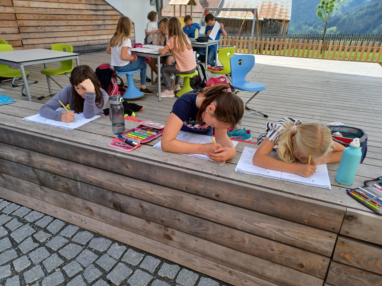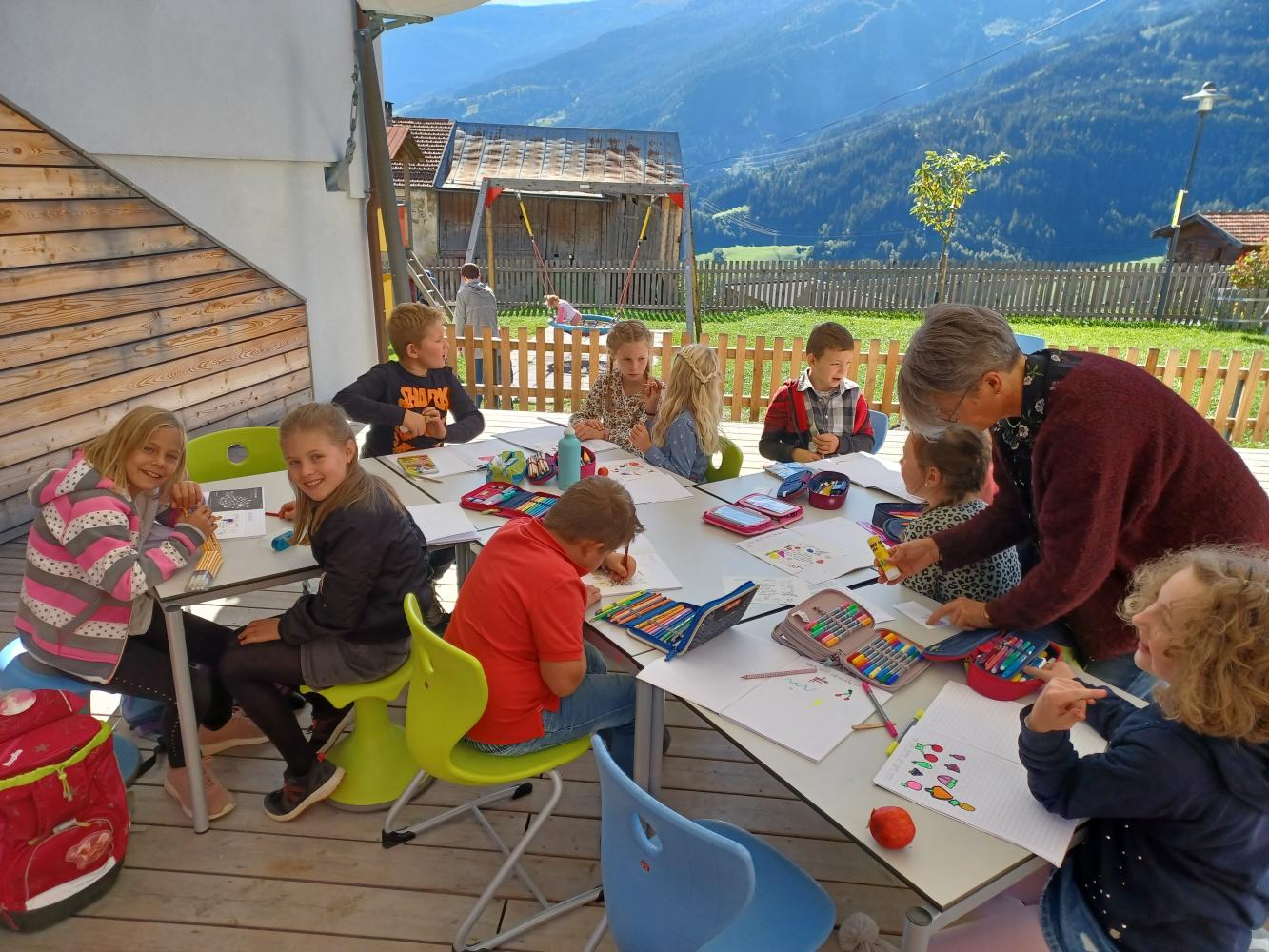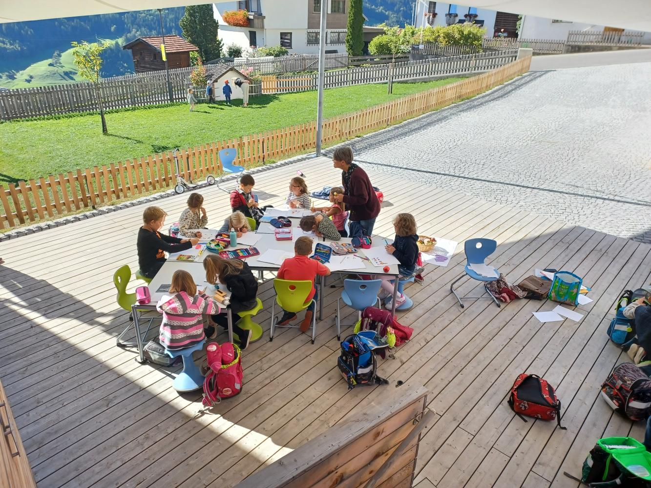 Auch Religionslehrerin Barbara entschied heute bei diesem wunderbaren Wetter spontan, ihren Unterricht in die Freiklasse zu verlegen.
