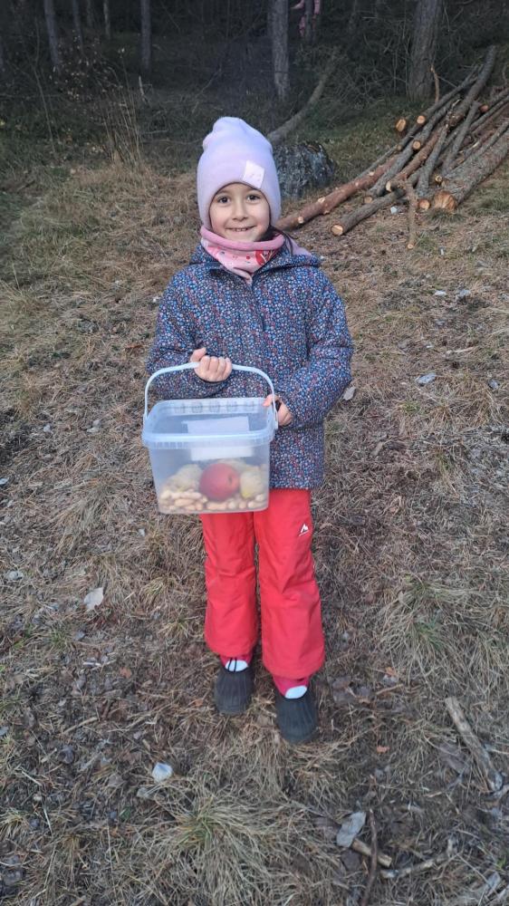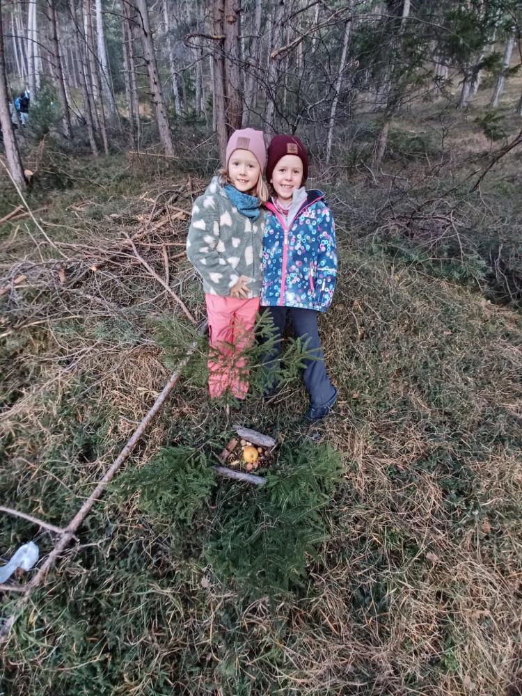 Waldweihnacht von Martina Schnitzler 23. Dezember 2025 Am 23. Dezember machten wir uns auf den Weg, um den Tieren im Wald Futter zu bringen.Die Kinder bereiteten liebevoll Futterplätzchen für die Waldtiere vor und hatten viel Spaß dabei.Gemütlich wurde im Wald gejausnet, Tee getrunken, Kekse gegessen und eine Weihnachtsgeschichte vorgelesen.
