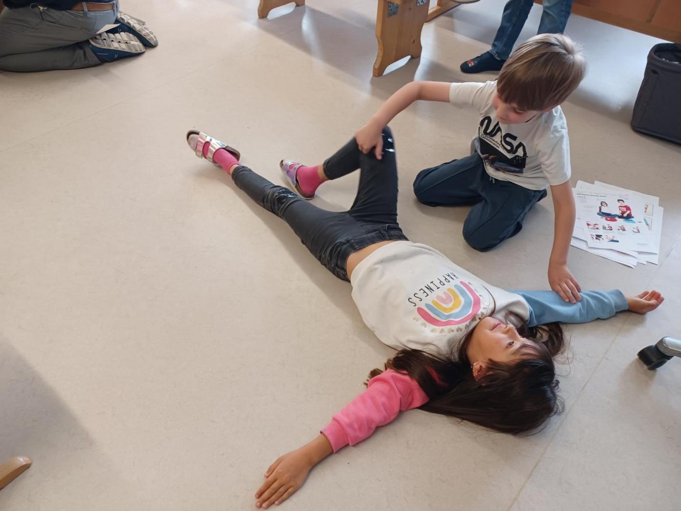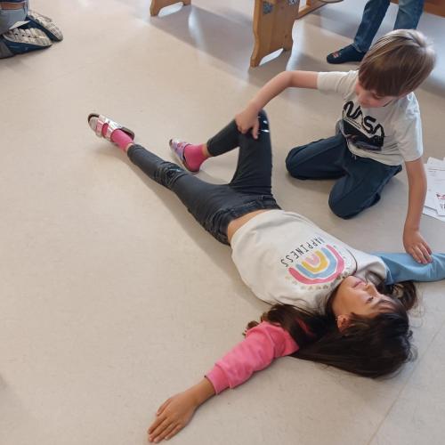 Dazu wollten wir mit einigen Aktionen und Gästen der Blaulichtorganisationen (Rettungssanitäter, Polizei, Feuerwehrhalle Stanz besichtigen, Bergrettung), beweisen, dass die Kinder aus Stanz bestens Bescheid wissen, was bei Notfällen zu tun ist.