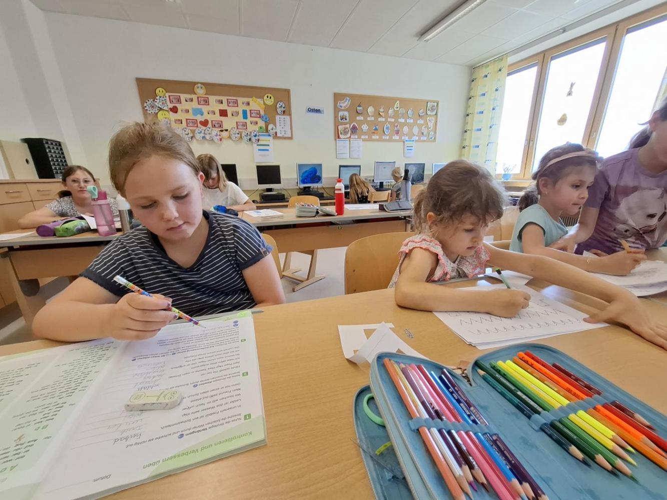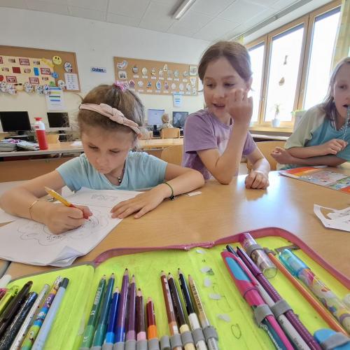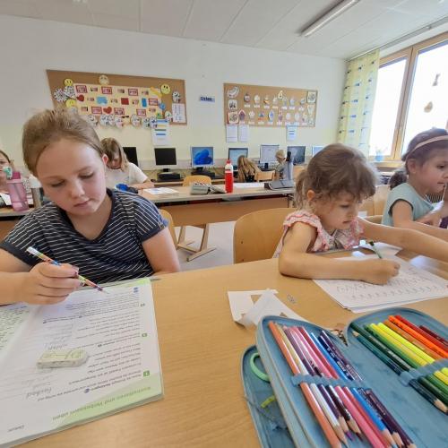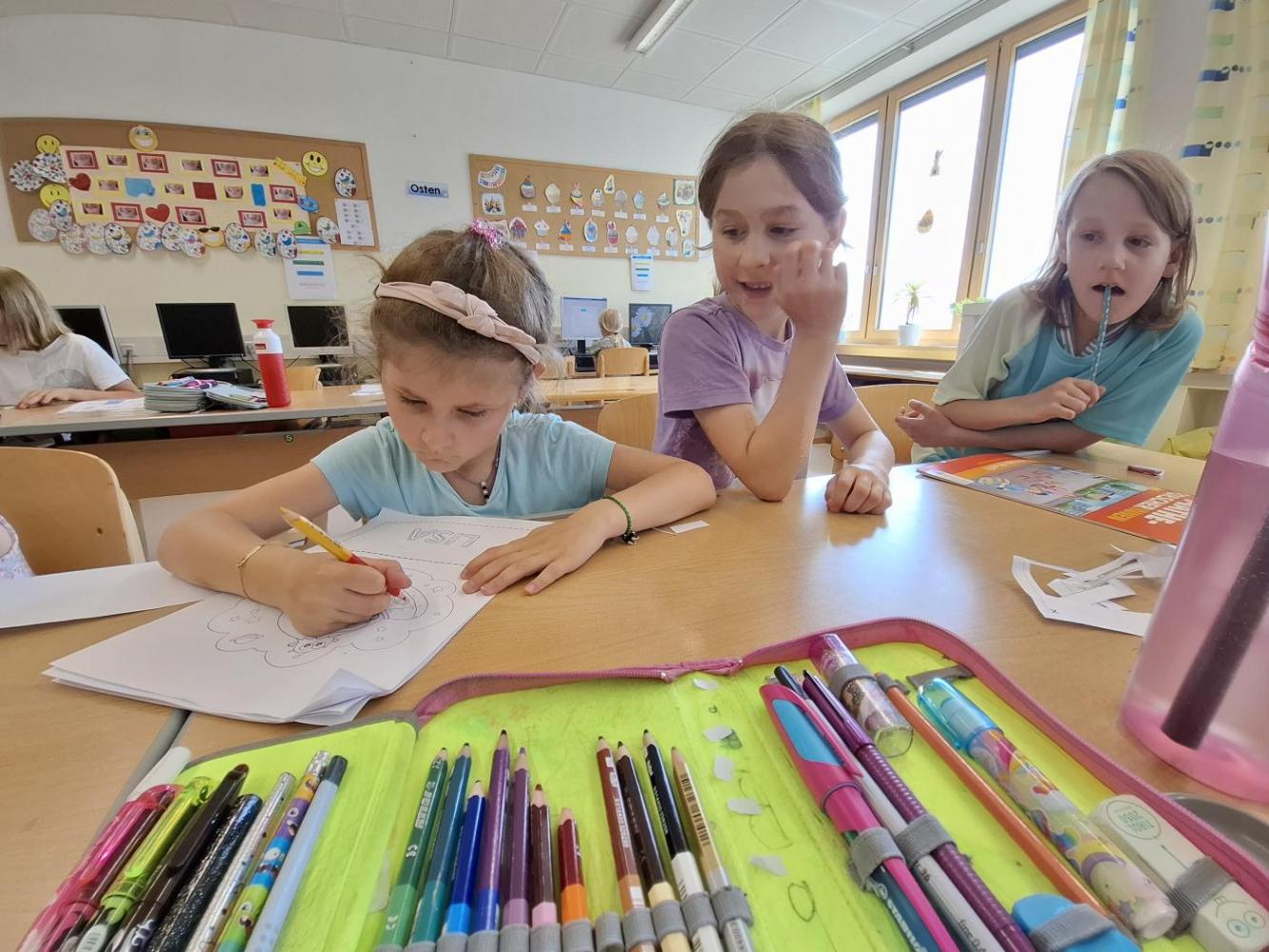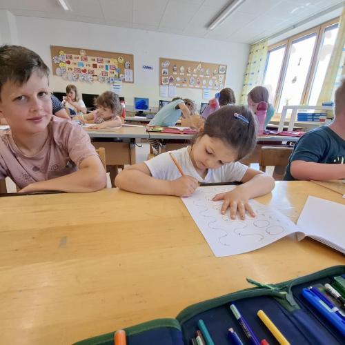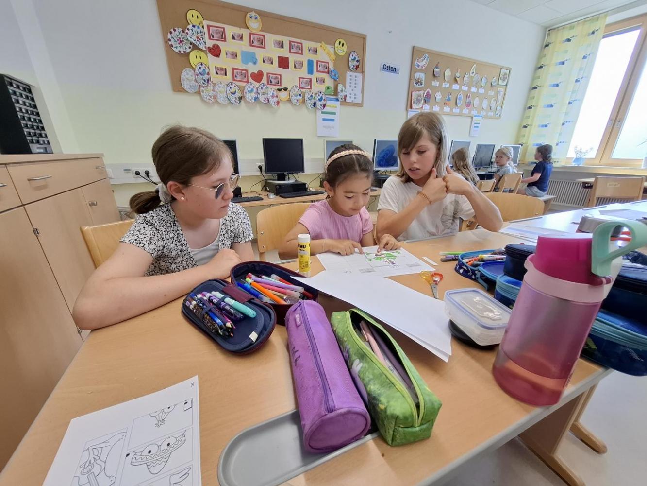 In der künftigen Konstellation (1. und 2. Stufe 2025) schauten wir uns den Klassenraum genauer an. Es gab auch schon Planungen und Besprechungen darüber, was wir im Herbst gemeinsam in diesem Zimmer machen werden.