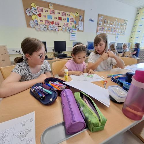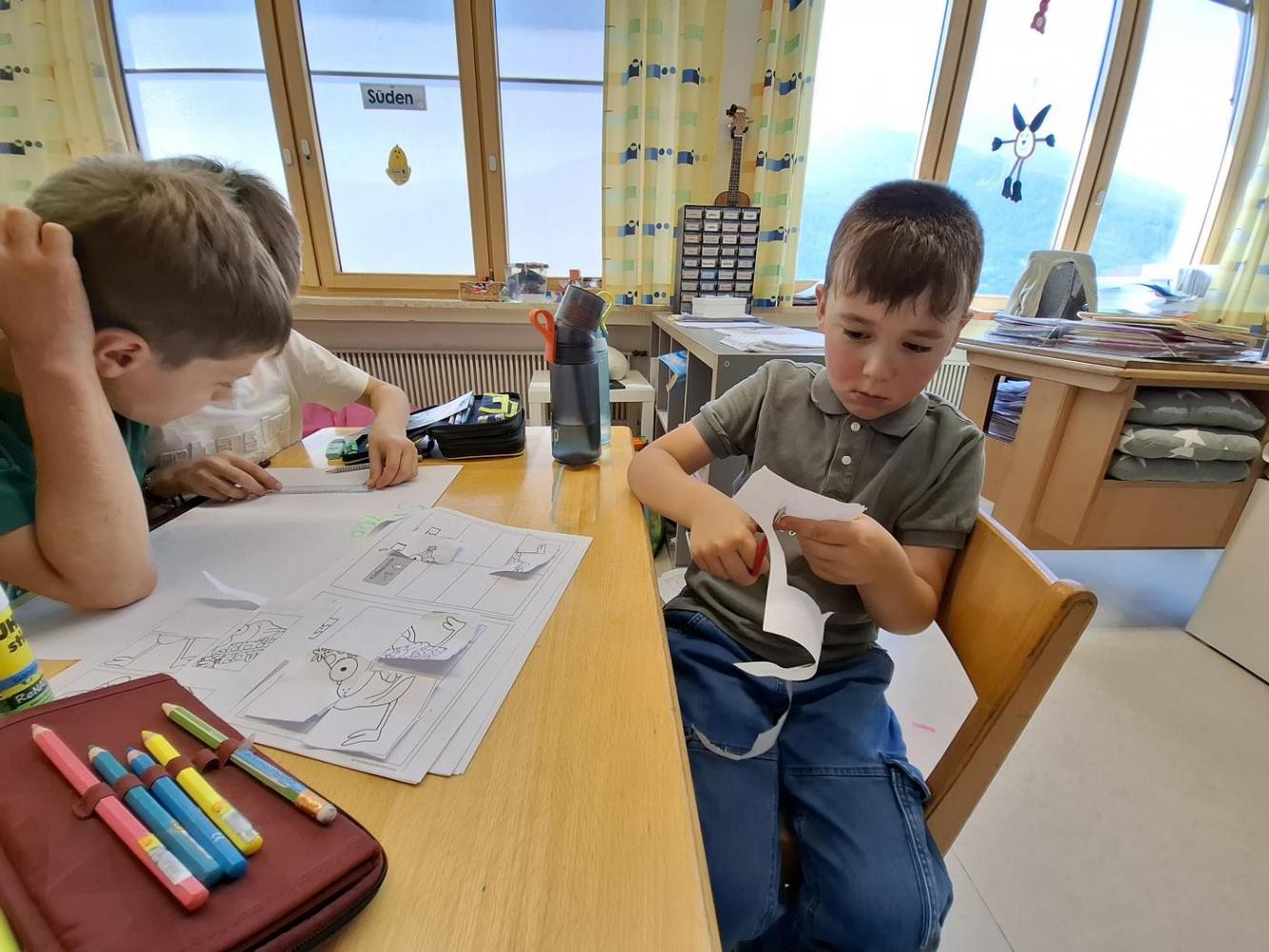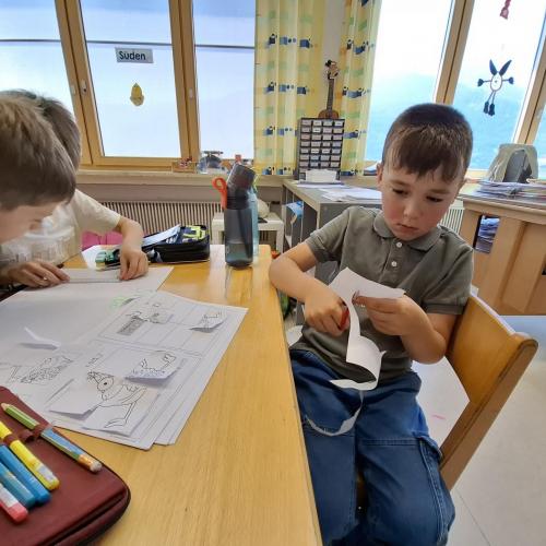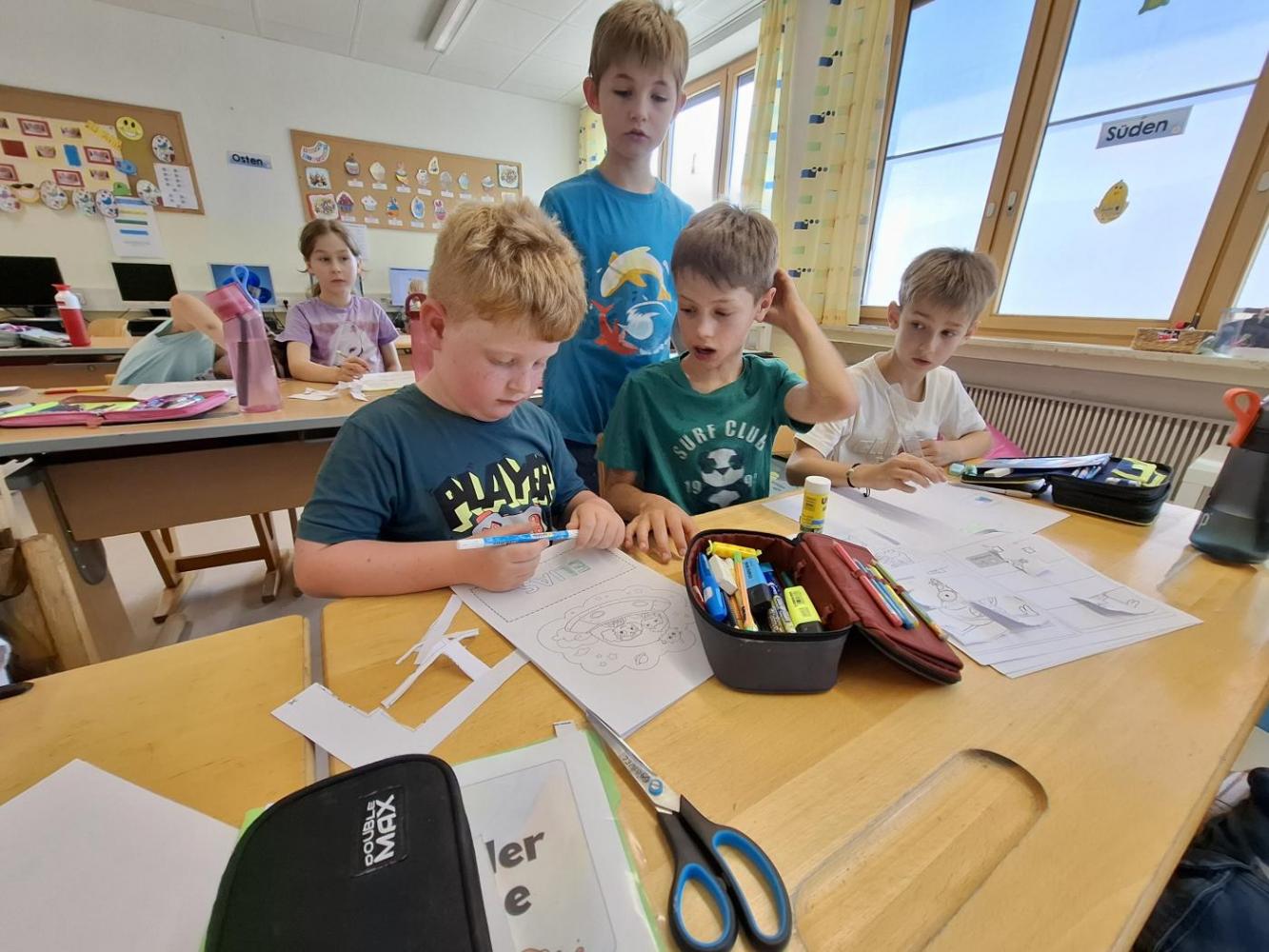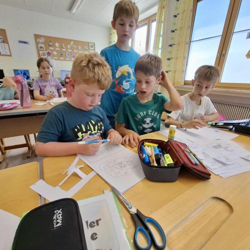 Nach der gemeinsamen Pause wurde fleißig gearbeitet: geschrieben, gemalt, geschnitten und geklebt;